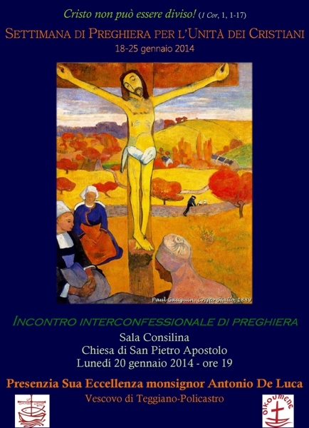 Tra le inziative della nostra Diocesi si segnala l'Incontro interconfessionale di preghiera che si terrà lunedì 20 gennaio, alle ore 19.00, presso la Parrocchia San Pietro Apostolo in Sala Consilina.