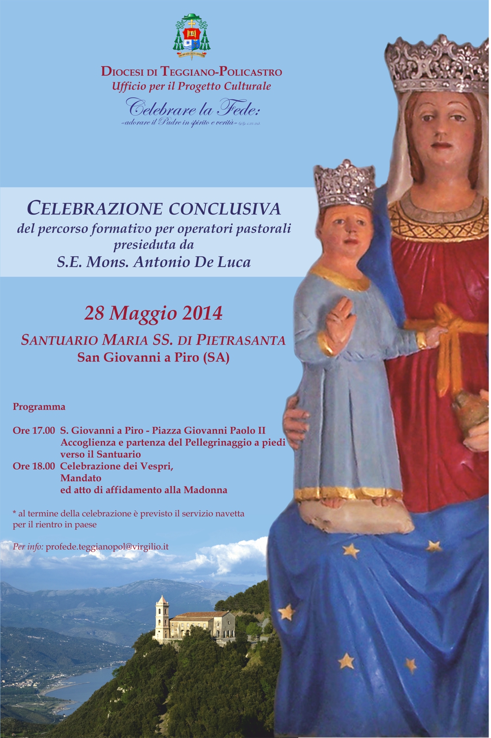 S. Giovanni a Piro: domani, mercoledì 28, presso il Santuario di Maria SS. di Pietrasanta, si concluderà il secondo anno del percorso diocesano di formazione per operatori pastorali, la “Scuola del Vangelo”. Il momento conclusivo sarà presieduto dal Vescovo Antonio De Luca ed avrà il il seguente programma: