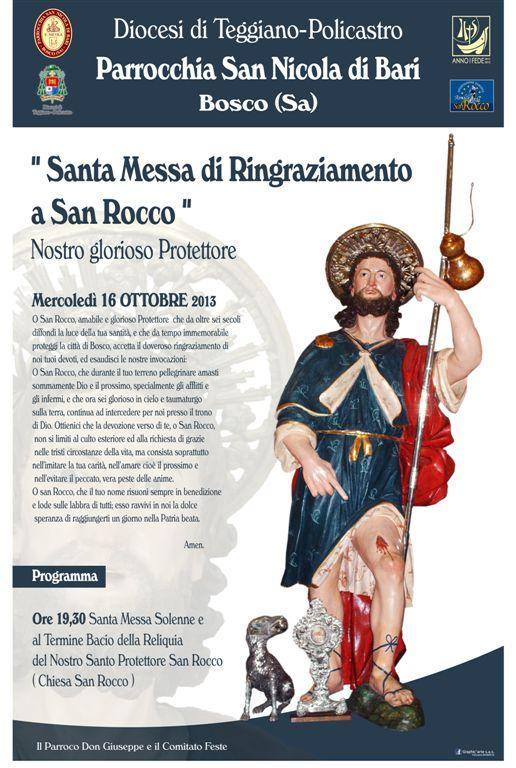 Per chi non ha potuto partecipare, il Parroco e il Comitato Festa hanno deciso di celebrare mercoledì 16 c.m. una Solenne Liturgia in Onore del Santo Protettore. Il programma (in allegato) consiste nella Celebrazione della Santa Messa e il Bacio della Reliquia del Santo, tutto questo alle ore 19,30 in Chiesa San Rocco.