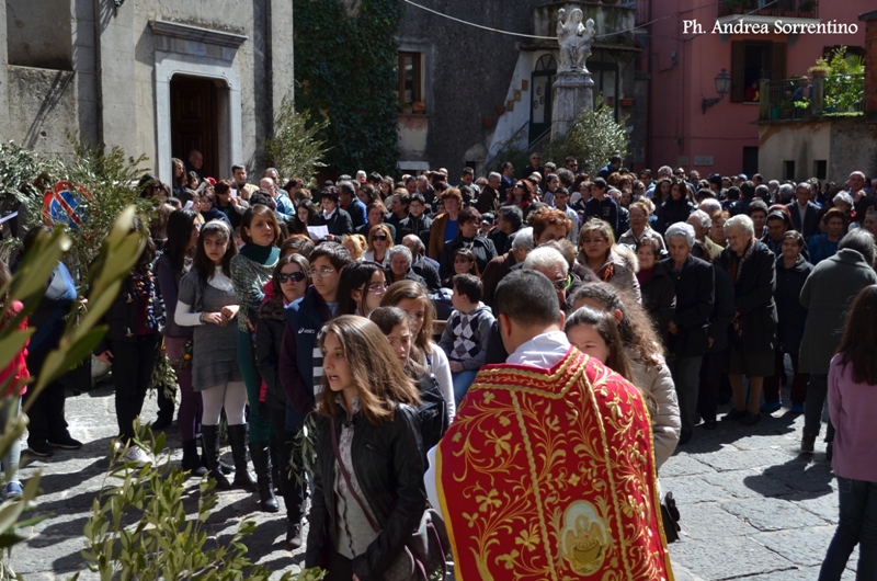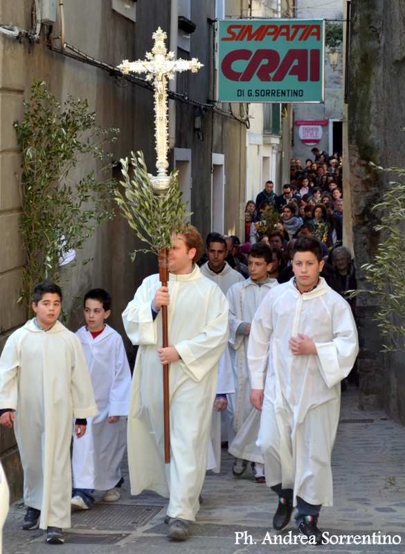 Questa mattina anche a San Giovanni a Piro è stata celebrata la Domenica delle Palme. Da sempre uno degli eventi religiosi (forse il primo) con maggiore partecipazione del popolo sangiovannese (a parte la festività della Madonna di Pietrasanta). Come da tradizione la Celebrazione ha avuto inizio nella piazza di San Gaetano, nella contrada Tornito, con la benedizione dei rami, poi la processione verso il rione più antico, in direzione della chiesa parrocchiale. Un sole quasi estivo ha accompagnato i fedeli per tutta la mattina, riscaldandoli durante la Celebrazione Eucaristica svoltasi in una gremita Piazza Teodoro Gaza. Il parroco Scapolatempo nell'omelia, ricordando la profonda differenza tra celebrazione e tradizione popolare, ha ribadito all'assemblea che l'Unico che può donarci la felicità è Gesù Cristo.