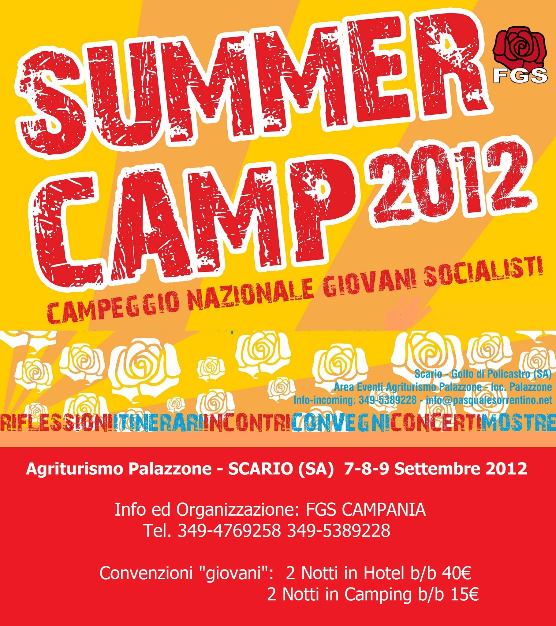 Si svolgerà dal 7 al 9 settembre il Summer Camp 2012, il campeggio nazionale dei Giovani Socialisti. Si terrà a Scario, nell'area eventi dell'Agriturismo Palazzone, nel territorio comunale di San Giovanni a Piro.