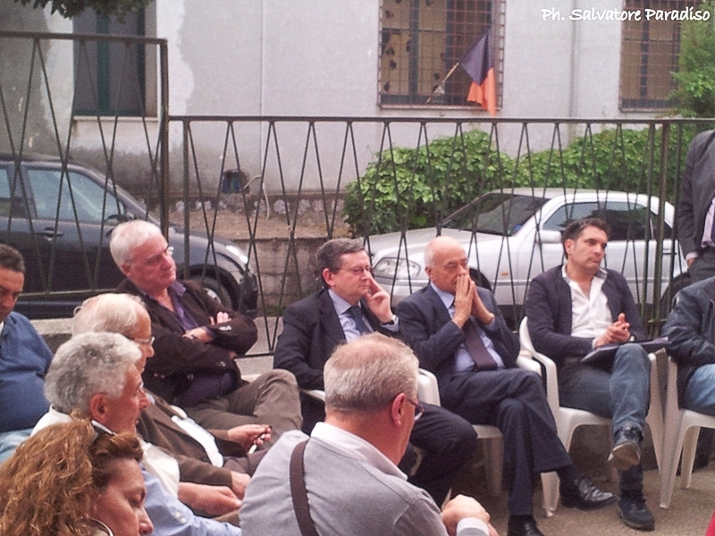 Davanti (e non dentro) alle ex scuole elementari di San Giovanni a Piro per parlare di forestazione e del diritto alla retribuzione degli operai idraulico- forestali della Comunità Montana. Alla vigilia della festa del lavoro. Nutrito il parterre delle personalità: tre consiglieri regionali (Pica, Gianfranco Valiante e Mucciolo, nella foto), qualche sindacalista, il Presidente (Cobucci) ed il segretario (D'Angelo) dell'Ente montano, consiglieri di minoranza di Comuni vicini (Tagliaferri e Borrelli). Organizzatori dell'evento i gruppi Margherita e Primavera del comune di San Giovanni a Piro. Assente al gran completo la politica del centro-destra, dal livello comunale a quello regionale. Numerosi e partecipi i veri protagonisti dell'evento, gli operai (nella foto, Paolo Florimonte).