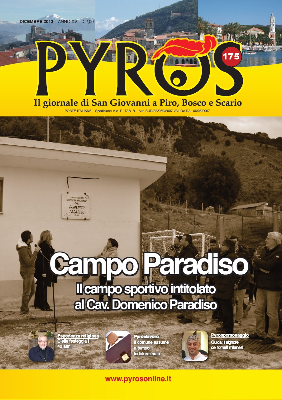Tra gli argomenti trattati: "Ventieventi", la classifica dei principali fatti accaduti del corso del 2013 secondo la redazione; l'intervista del Direttore a Mons. Luigi Negri, Arcivescovo di Ferrara e Comacchio, e il convegno per i 40 anni di CL a San Giovanni a Piro nel ricordo di don Gennaro; il sessantesimo anniversario dell'incendio del Santuario raccontato dalla gentile penna di Lucia D'Angelo; la cerimonia di intitolazione del campo sportivo comunale al Cav. "Gentiluomo" Domenico Paradiso (a cui è dedicata la copertina); "A'strinna", un particolare ricordo del Natale di una volta; la politica, con l'intervista al nuovo Segretario locale Gabriele Fasolino; la rubrica "il personaggio" dedicata in questo numero allo chef Gianni Guida; l'attualità con il concorso comunale per un posto di istruttore amministrativo/tecnico, il convegno della Pro Loco contro la violenza sulle donne e l'assemblea del Comitato Cilentano per i Diritti Sociali...tutto questo nel numero di dicembre 2013.