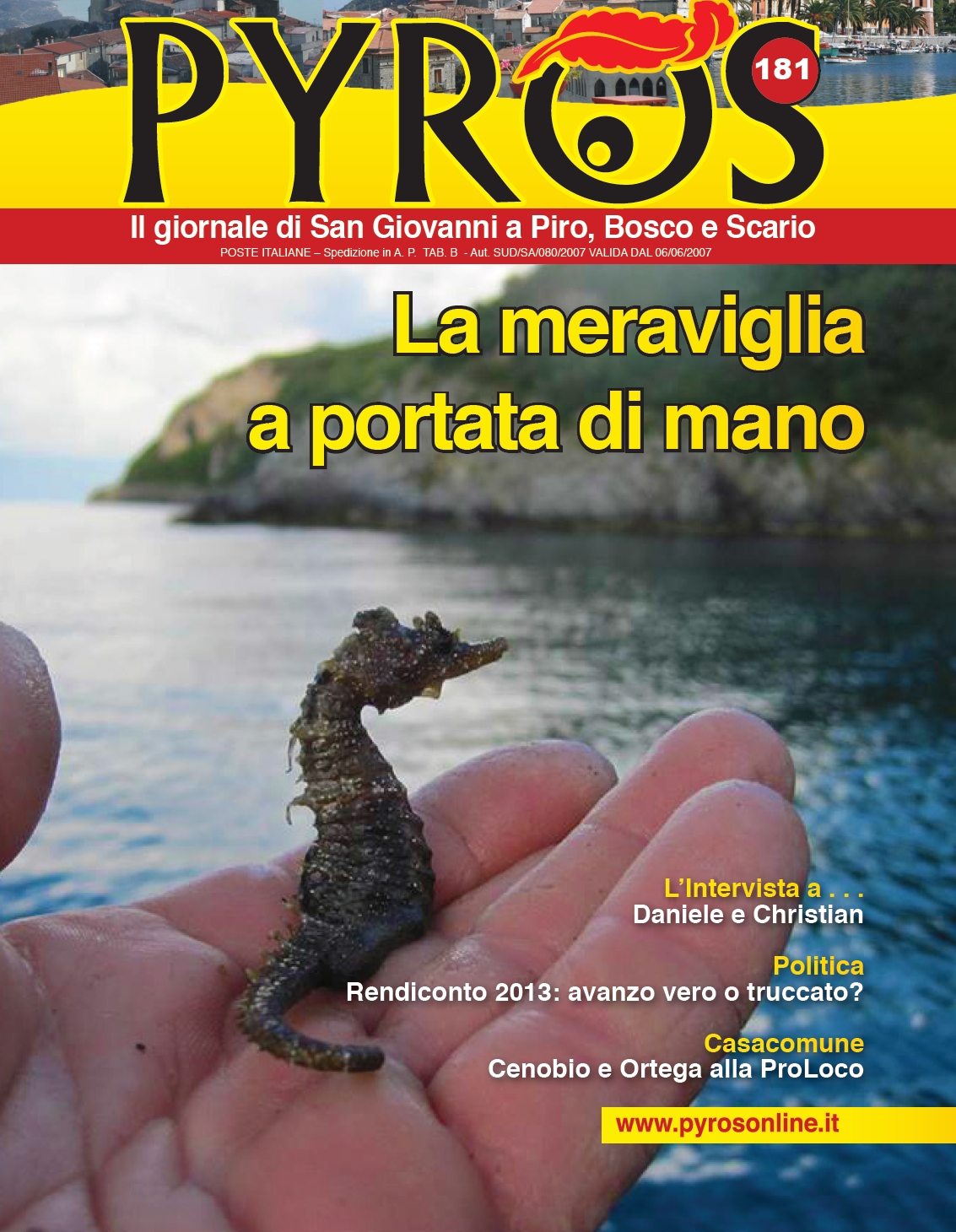 Da domani troverete nelle edicole del comune di San Giovanni a Piro il numero 181 del mensile Pyros.