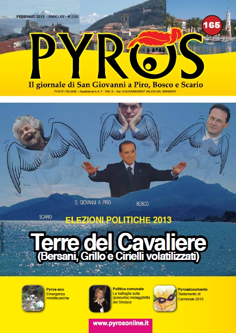 Tra gli argomenti trattati: un lungo speciale sulle elezioni politiche (a cui è dedicata la copertina), la politica locale con il problema "antenne" e la "Battaglia in consiglio sulla (presunta) ineleggibilità del Sindaco", l'ecologia con l'iniziativa scolastica della raccolta olio esausto e una inchiesta sulle mini discariche abusive...tutto questo nel numero di febbraio 2013.
