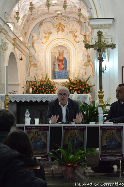 Intensa serata culturale questa sera al Santuario di Pietrasanta a San Giovanni a Piro. Il prof. Giuseppe Caruso ha letto e commentato alcuni passi del canto XXXIII del Paradiso, in particolare l'Inno alla Vergine, la profonda preghiera di San Bernardo dedicata alla Madonna.