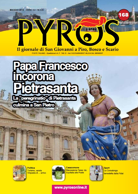Tra gli argomenti trattati: un ampio speciale sull'Incoronazione della Madonna di Pietrasanta (a cui è dedicata la copertina) con un interessante articolo tecnico sulle corone; l'intervista a Manlio Castagna, vice direttore del Giffoni Film Festival; la politica locale, con la cronaca del Consiglio in cui si è trattato di "imposta di arrivo"; lo sport, con la 31° edizione della Corsalonga e il record podistico di Giuseppe Magliano; l'attualità, con un provocatorio pezzo del Vice Direttore dal titolo: "Primo maggio in peregrinatio"...tutto questo nel numero di maggio 2013.