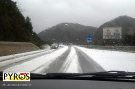 La nevicata prosegue da circa un'ora e mezza, alcuni mezzi sono bloccati all'inizio di San Giovanni a Piro