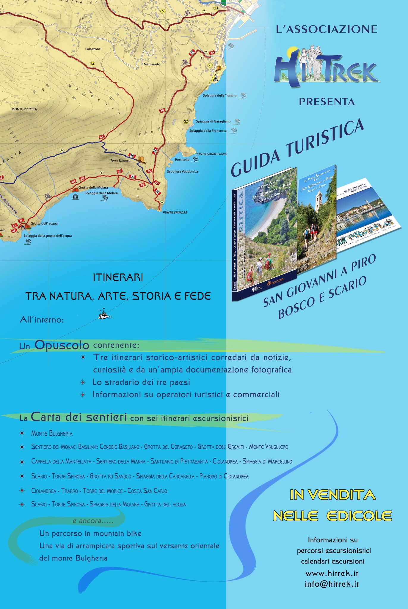 La neonata "Ass Hi Trek" presenta una innovativa guida turistica del comune di San Giovanni a Piro. Gli autori, Elvira Bellotti, Giuseppe e Lucio Sorrentino, vi accompagneranno tra i meravigliosi posti di S. Giovanni a Piro, Bosco e Scario, grazie ad uno splendido opuscolo e una dettagliata carta dei sentieri. La guida è fin da ora in vendita in edicola. Per maggiori informazioni www.hitrek.it.