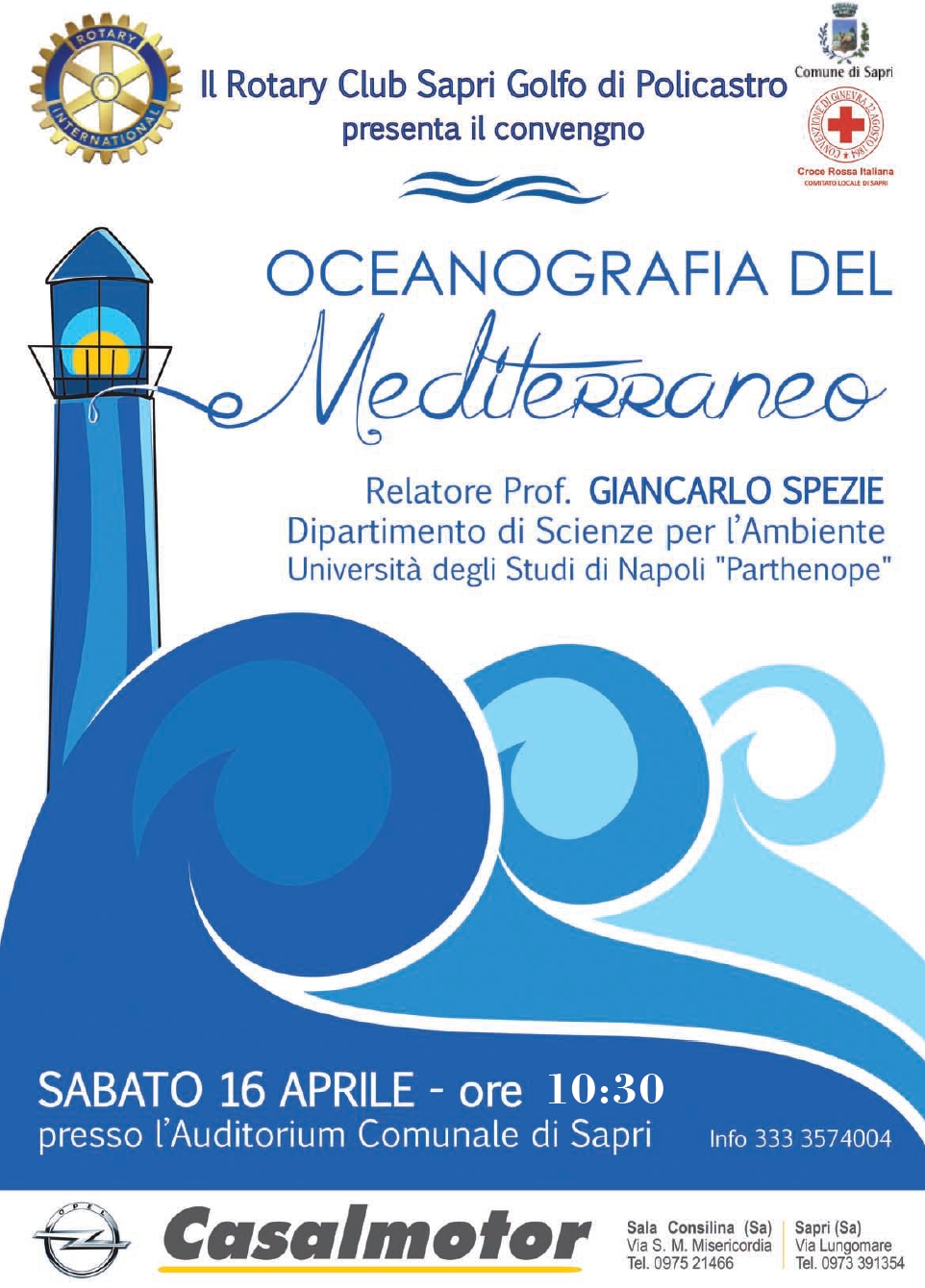 Sapri: sabato 16 aprile, alle ore 10.30, presso l’Auditorium Comunale, si svolgerà il convegno dal titolo "Oceanografia del Mediterraneo", organizzato dal Rotary Club Sapri-Golfo di Policastro.