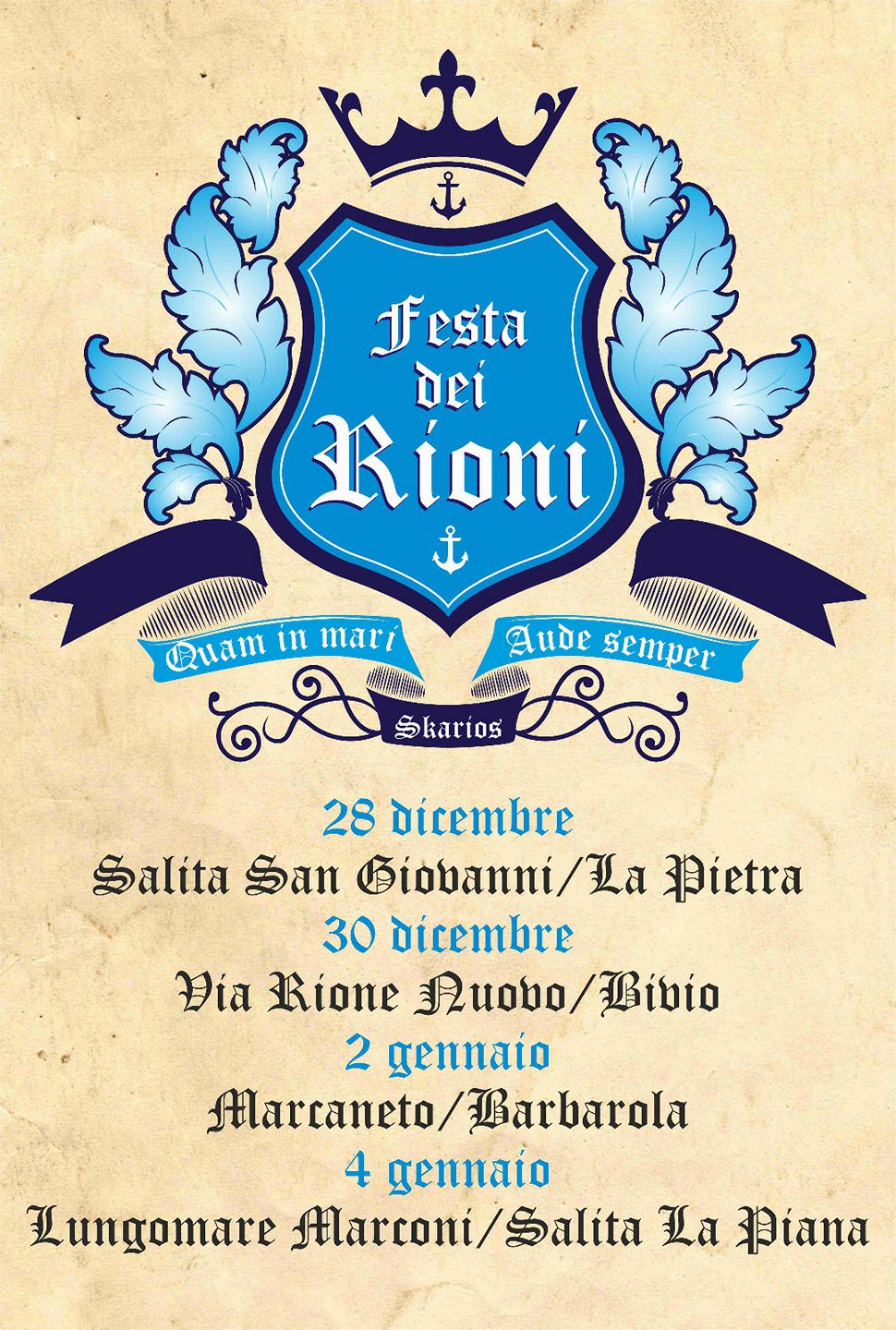 Il primo rione ad esibirsi sarà Salita San Giovanni-La Pietra. Toccherà poi il 30 dicembre agli abitanti di Via Rione Nuovo-Bivio, per proseguire con Marcaneto-Barbarola il 2 gennaio e, infine, Lungomare Marconi-Salita La Piana il 4 gennaio.