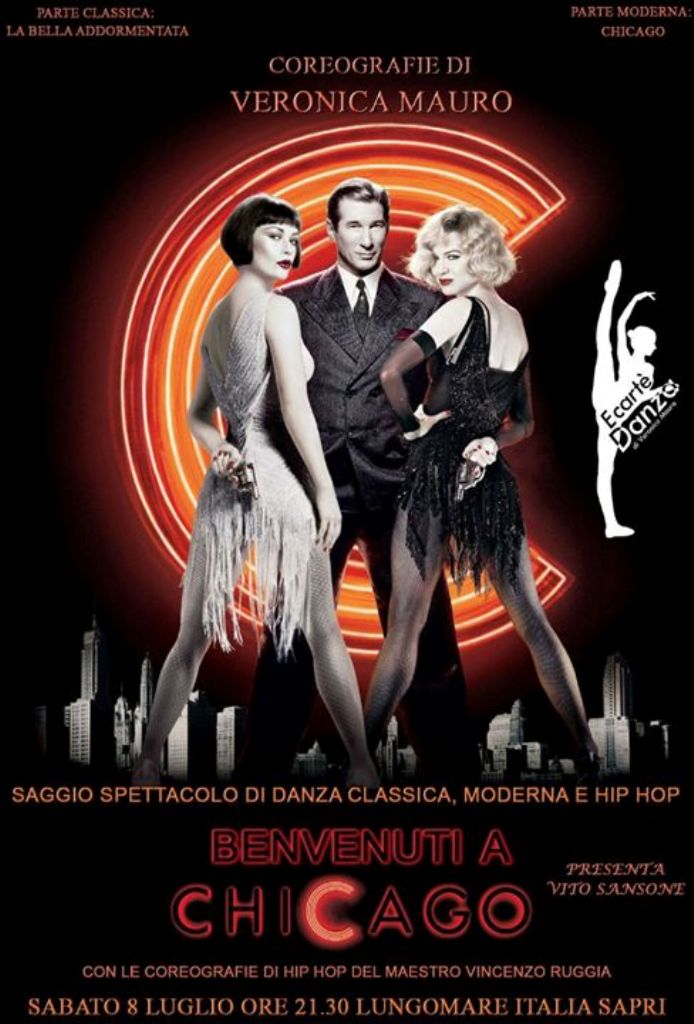 Le atmosfere di uno dei film/musical campione d’incassi nella 5^ edizione del saggio di fine anno accademico proposto dalla scuola “Ecarté Danza”. S’intitola “Benvenuti a Chicago” lo spettacolo che verrà messo in scena dagli allievi della ballerina e coreografa Veronica Mauro sabato 8 luglio