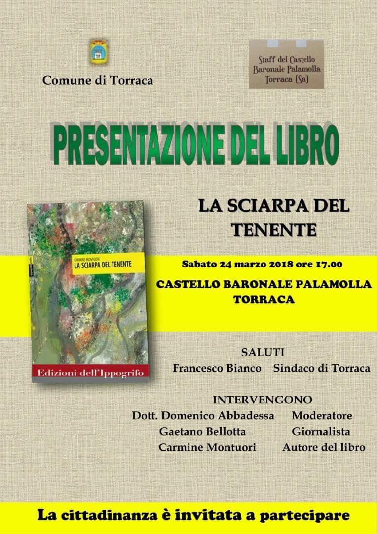 Sabato 24 marzo, alle ore 17.00, il castello Baronale Palamolla di Torraca si tingerà di giallo con la presentazione del libro "La sciarpa del tenente" di Carmine Montuori, Edizioni dell'Ippogrifo.
