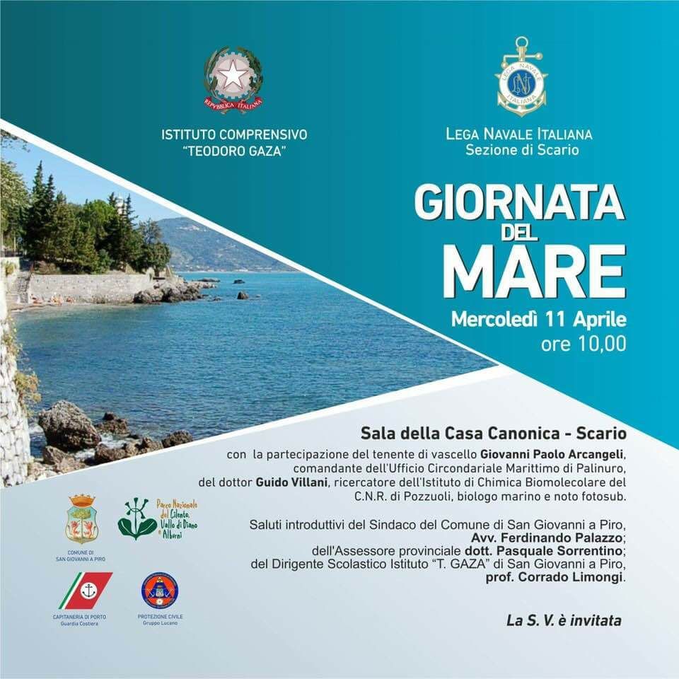 Nella Sala Canonica di Scario il giorno 11 aprile, alle ore 10:00, si terrà un incontro denominato "Giornata del Mare", organizzato in collaborazione tra L'Istituto scolastico Teodoro Gaza e la Lega Navale Italiana sezione di Scario.