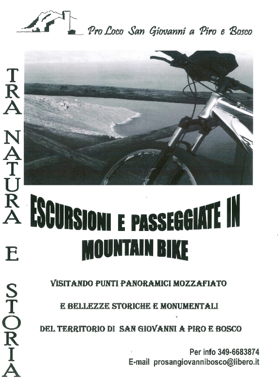 La Pro Loco San Giovanni a Piro - Bosco offre un nuovo servizio al turista: escursioni e passeggiate in mountain bike visitando punti panoramici mozzafiato e bellezze storiche e monumentali del territorio di San Giovanni a Piro e Bosco. Le visite saranno organizzate in base alle richieste pervenute; per maggiori informazioni consultare l'immagine allegata.